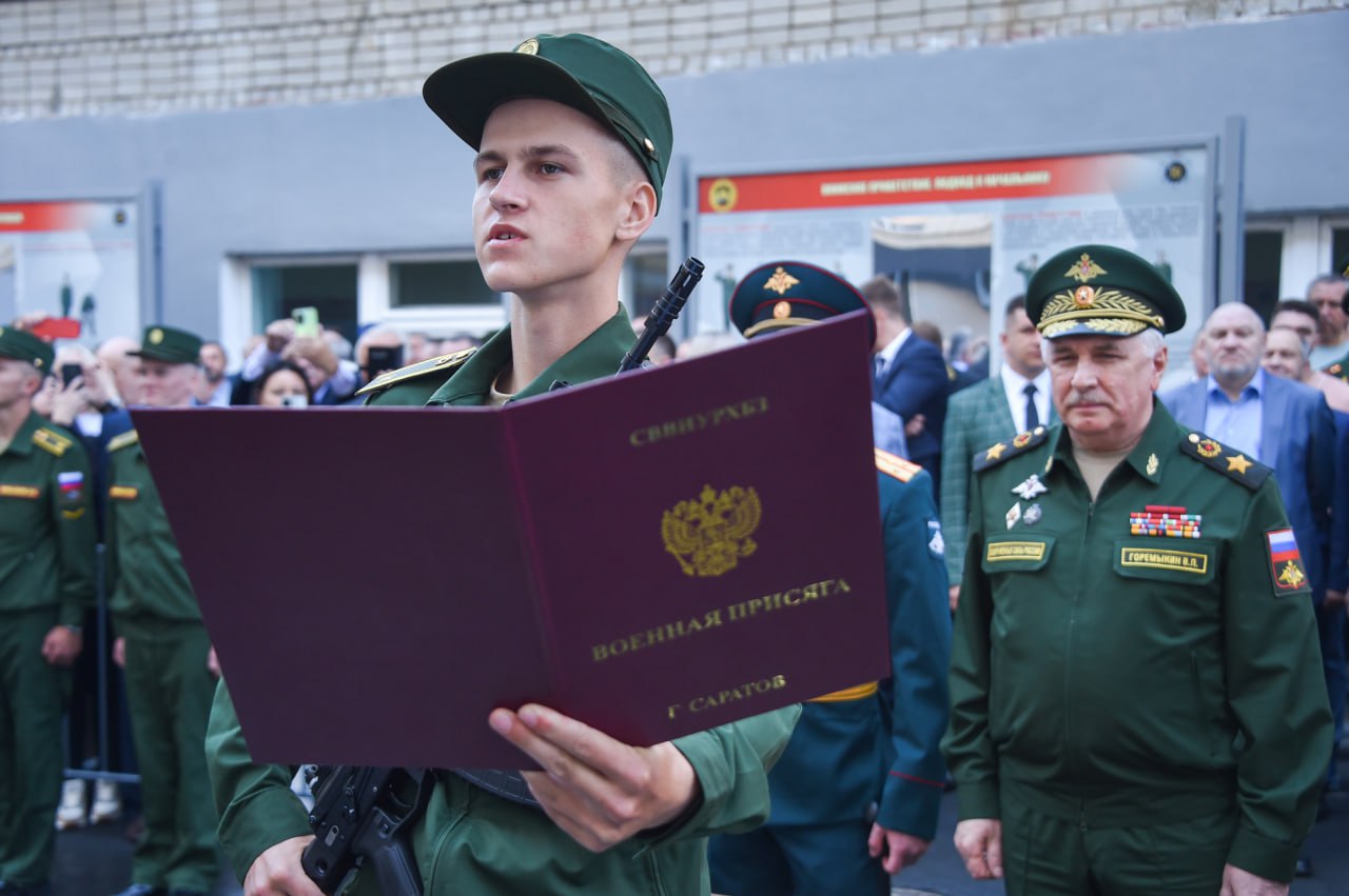 🤝 Заместитель главы российского военного ведомства поздравил личный состав Саратовского ВВИУ РХБ защиты с вручением боевого знамени и приведением к воинской присяге курсантов 1 курса.