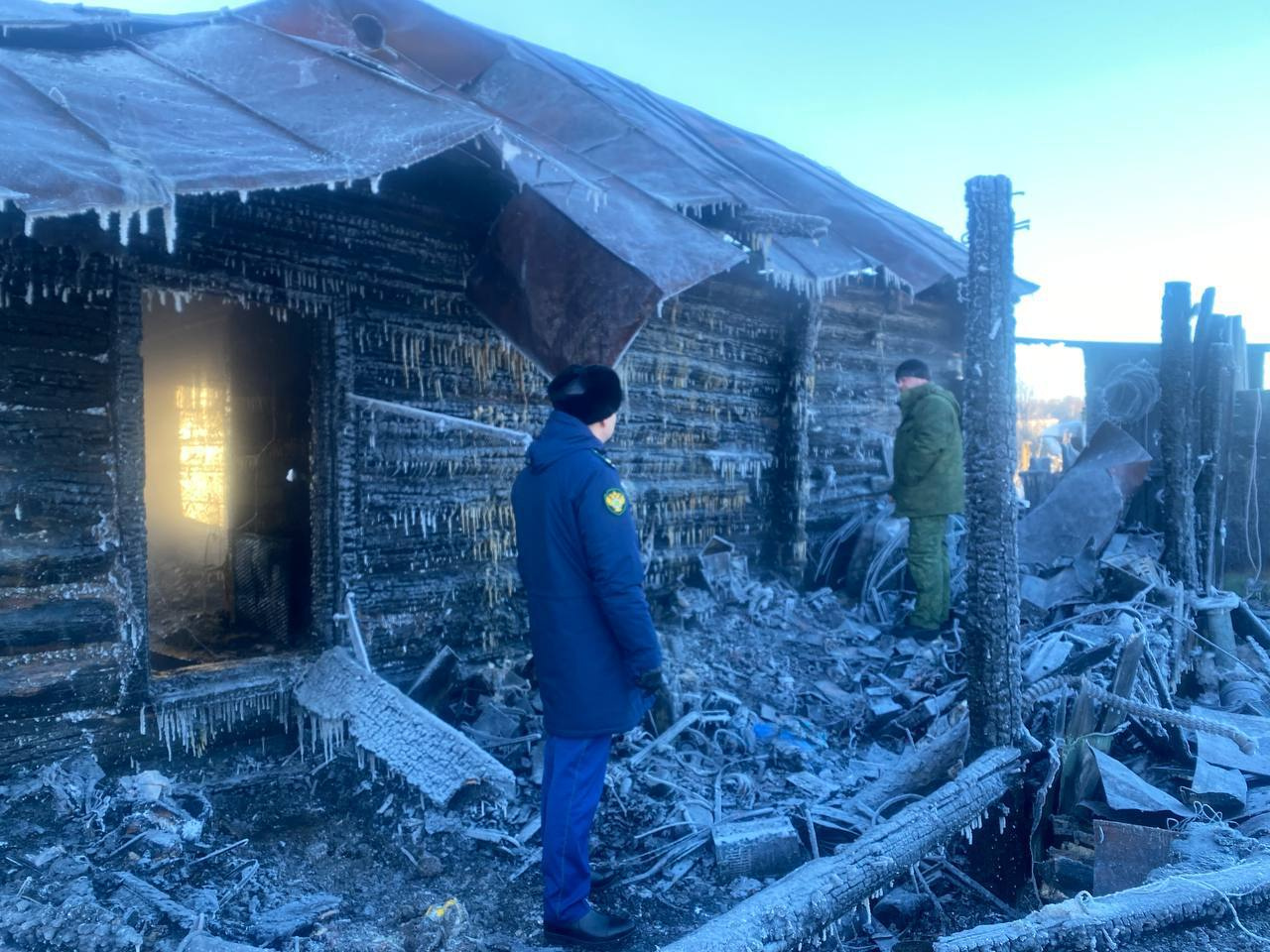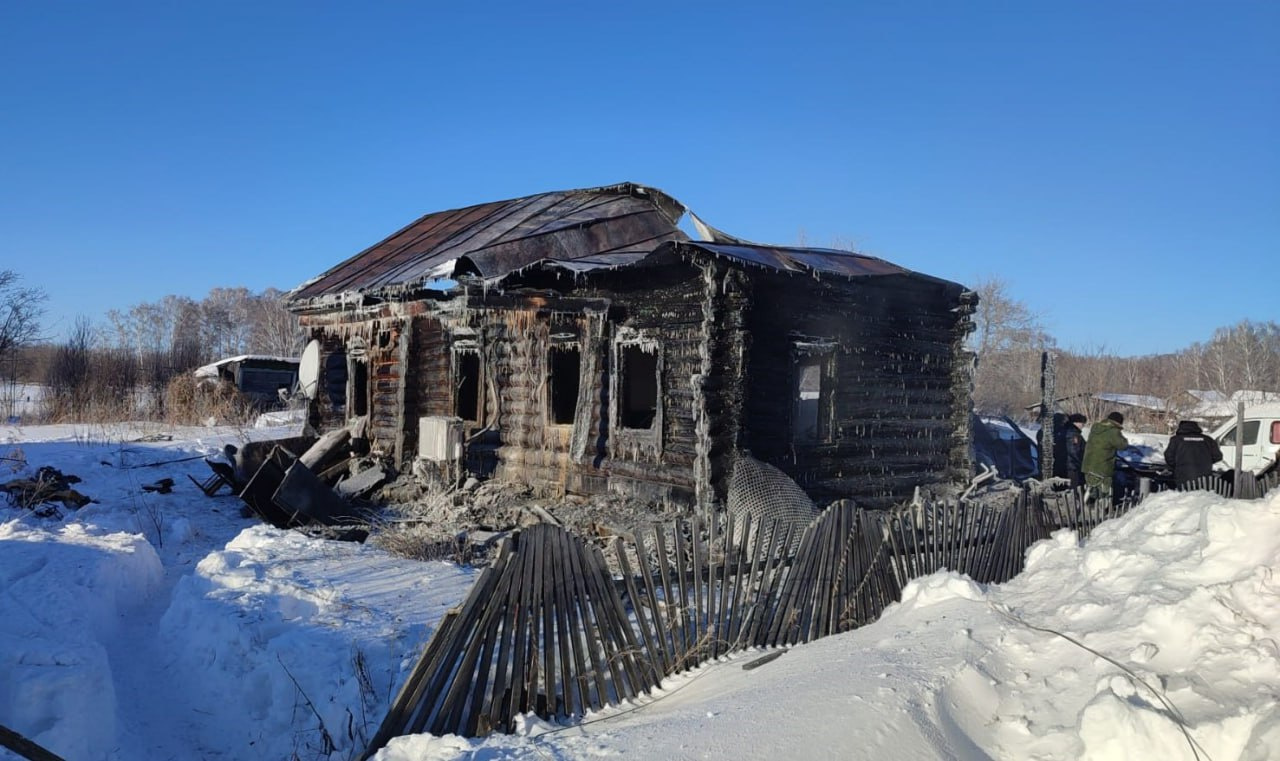 Появились кадры с места страшного пожара, где погибли женщина и двое маленьких детей. Возгорание произошло в Ордынском районе Новосибирской области 15 января.