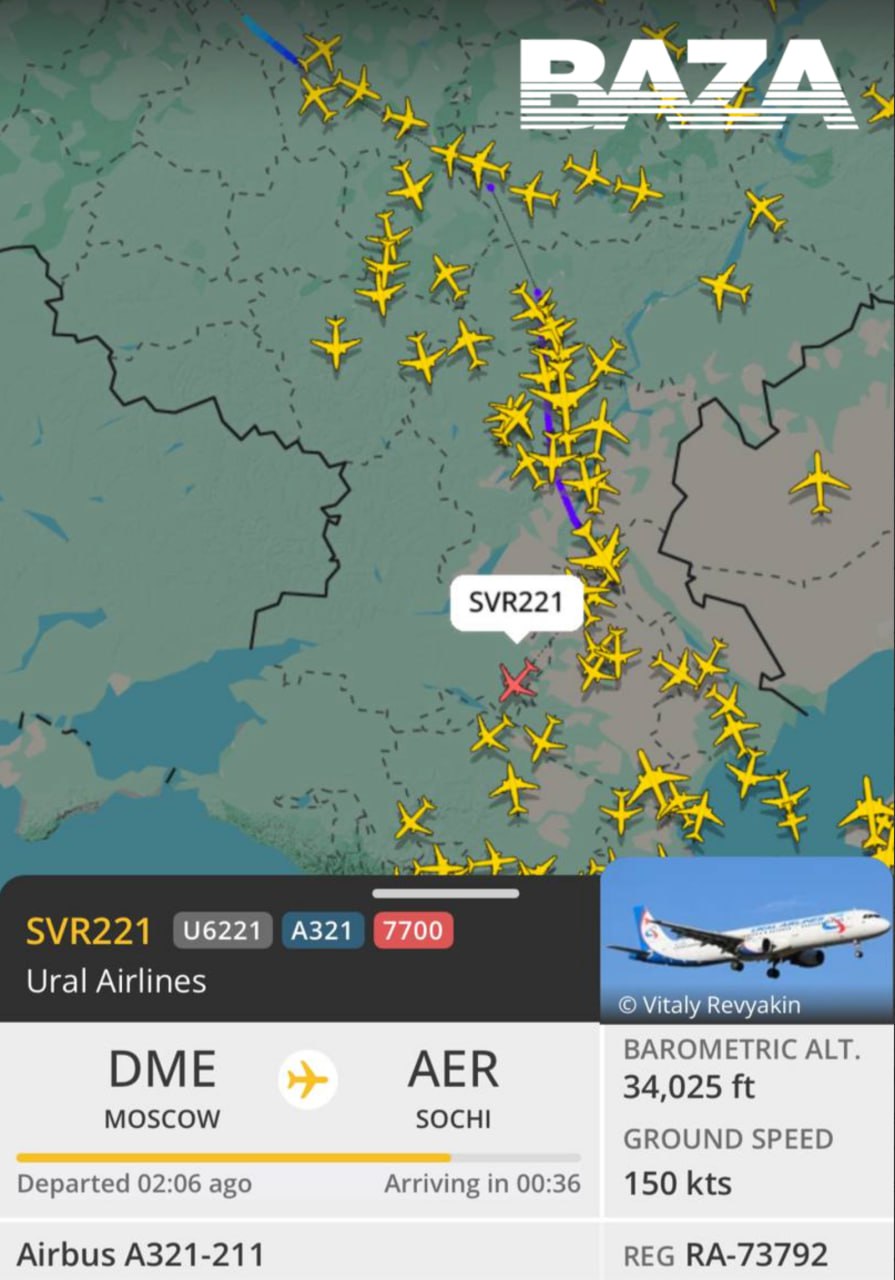 Самолет «Уральских авиалиний» Airbus A321, выполняющий рейс Москва – Сочи, предварительно, передал код о серьёзном происшествии на борту (код 7700). Судя по сервису Flightradar, самолет летит со скоростью около 280 км/ч — непривычно мало для высоты в 10 000 метров. При этом данные с сервиса порой отображаются неправильно. ❗ Подписывайтесь, это Baza