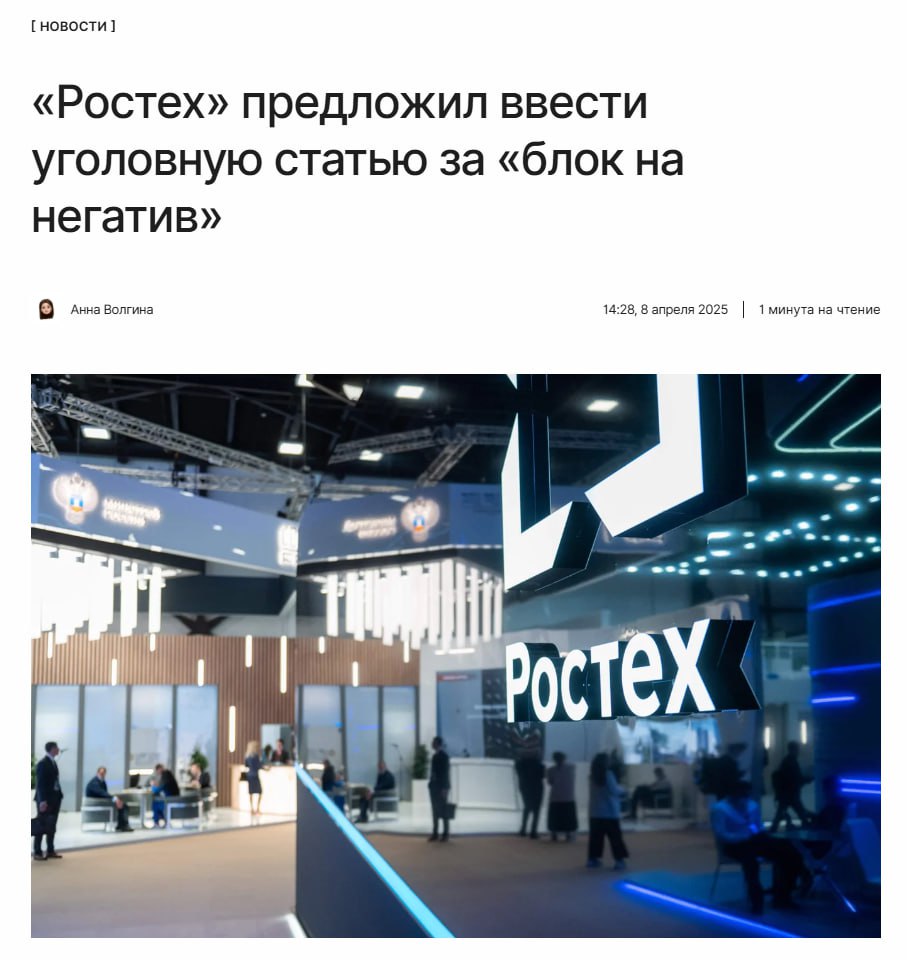 Госкорпорация «Ростех» предложила ввести новую статью УК РФ за «блок на негатив».