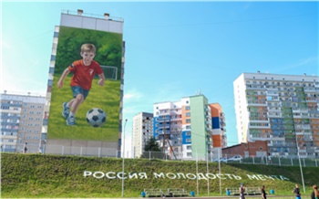 В красноярском микрорайоне Солнечный художники закончили работу над муралом с юным футболистом, сообщила руководитель агентства печати и массовых коммуникаций Красноярского края Ирина Брежнева.