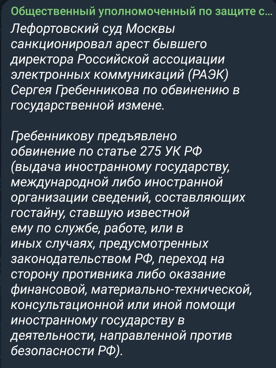 Но самое эпичное, что арест по госизмене последовал после того, как в мае 2025 суд вынес Гребенникову приговор по другому делу — о покушении на сбыт наркотиков в особо крупном размере.
