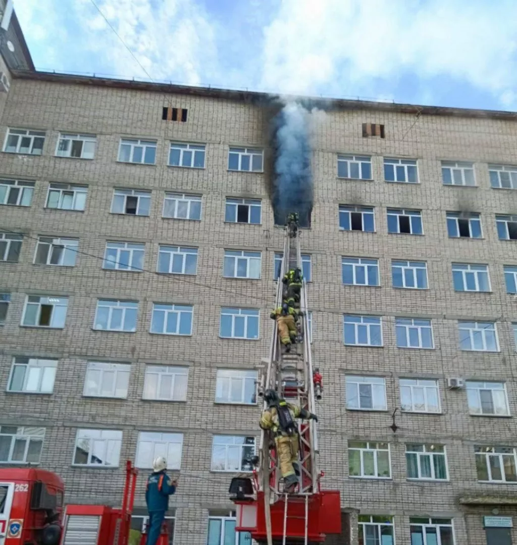 После пожара пациентов терапевтического отделения разместили в свободные палаты других отделений, а пациентов, вновь поступающих в терапевтическое отделение, направят в городскую больницу №2.