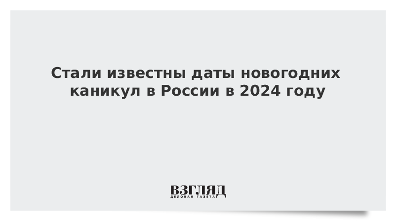 Стали известны даты новогодних каникул в России в 2024 году