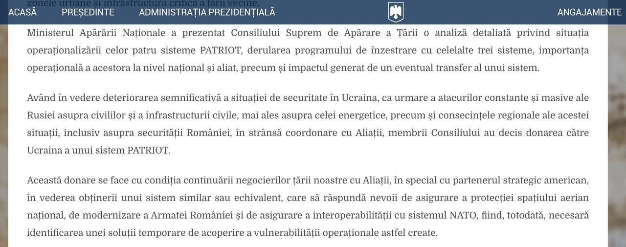 Румыния передаст Украине свою систему Patriot, сообщается на сайте президента Йоханниса.