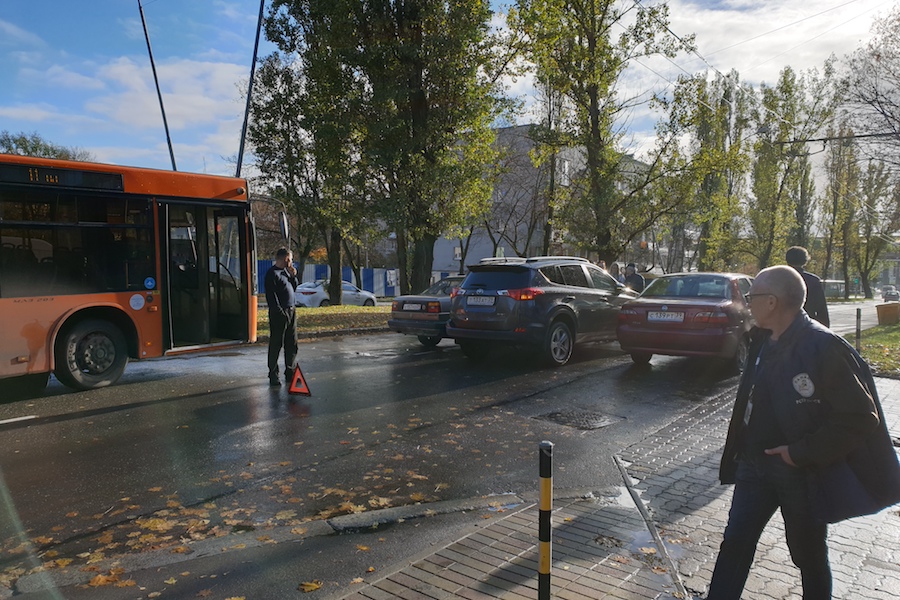 Столкнулись «Тойота» и «Фольксваген», никто не пострадал. Но участники ДТП перекрыли улицу, общественный транспорт объехать их не может. «Белый грузовик объехал по газону, помяв бордюр. Гад», — сообщил очевидец.