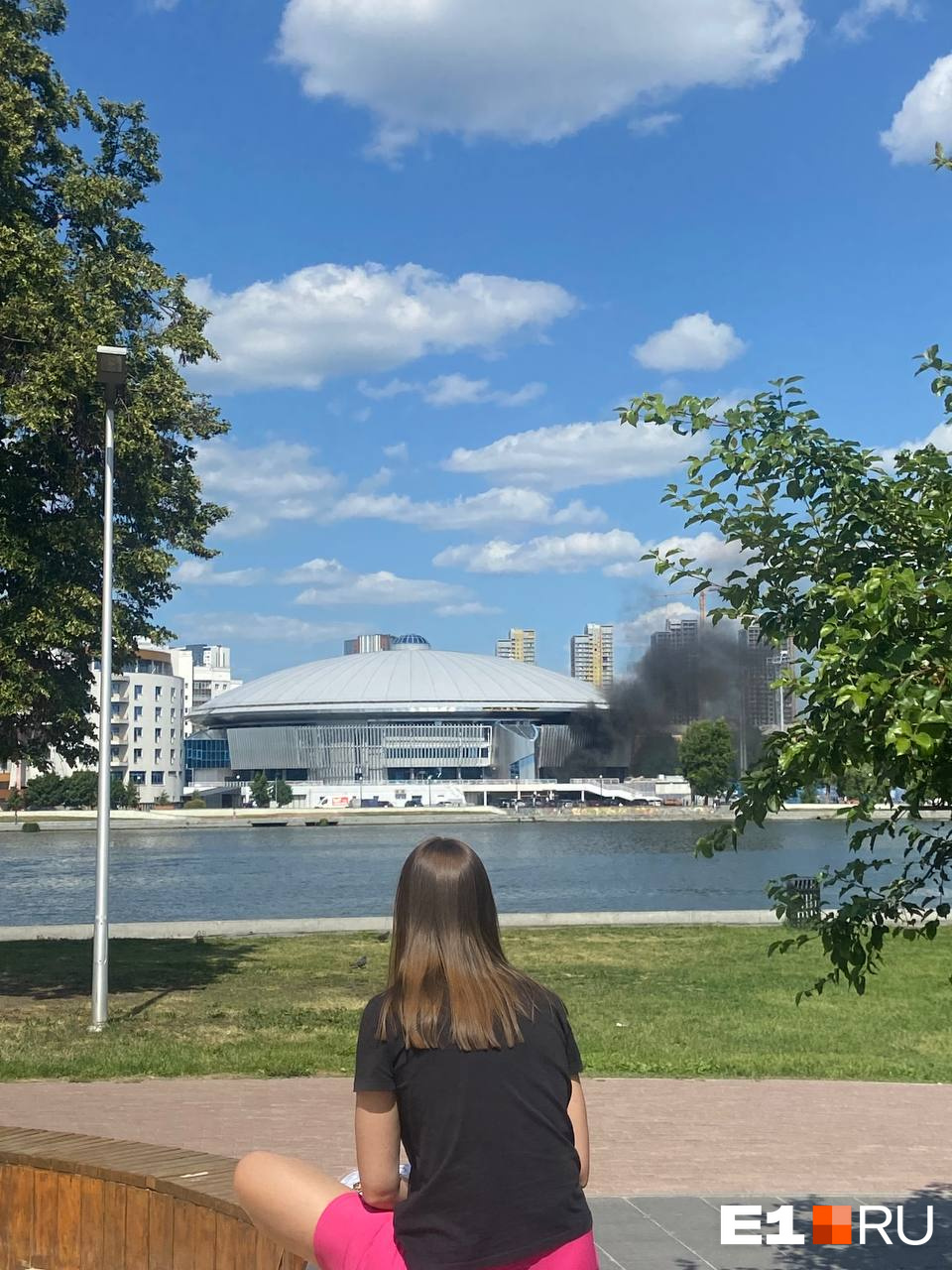 В центре Екатеринбурга начался пожар в районе Дворца игровых видов спорта. Читатели E1.RU сняли на фото и видео дымящееся здание.