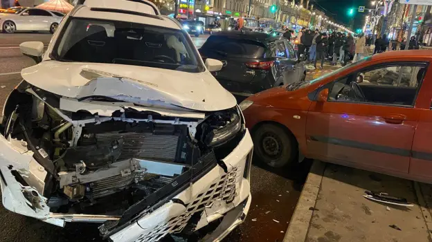 Водитель Mercedes покинул место ДТП и спровоцировал новую аварию – на этот раз у дома №47 по проспекту Революции. Машина столкнулась с автомобилем Exeed, за рулем которого сидела 21-летняя девушка. После этого оба авто врезались в припаркованные Hyundai Getz, Hyundai Solaris, Volkswagen Jetta и Volkswagen Tiguan.