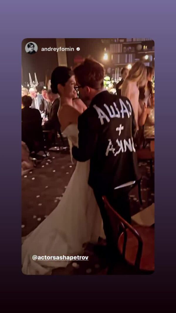 Жених был в классическом черном костюме с галстуком, где на спине пиджака была надпись «Саша+Вика» (судя по всему, чтобы даже самые забывчивые гости помнили о том, чей же это праздник).