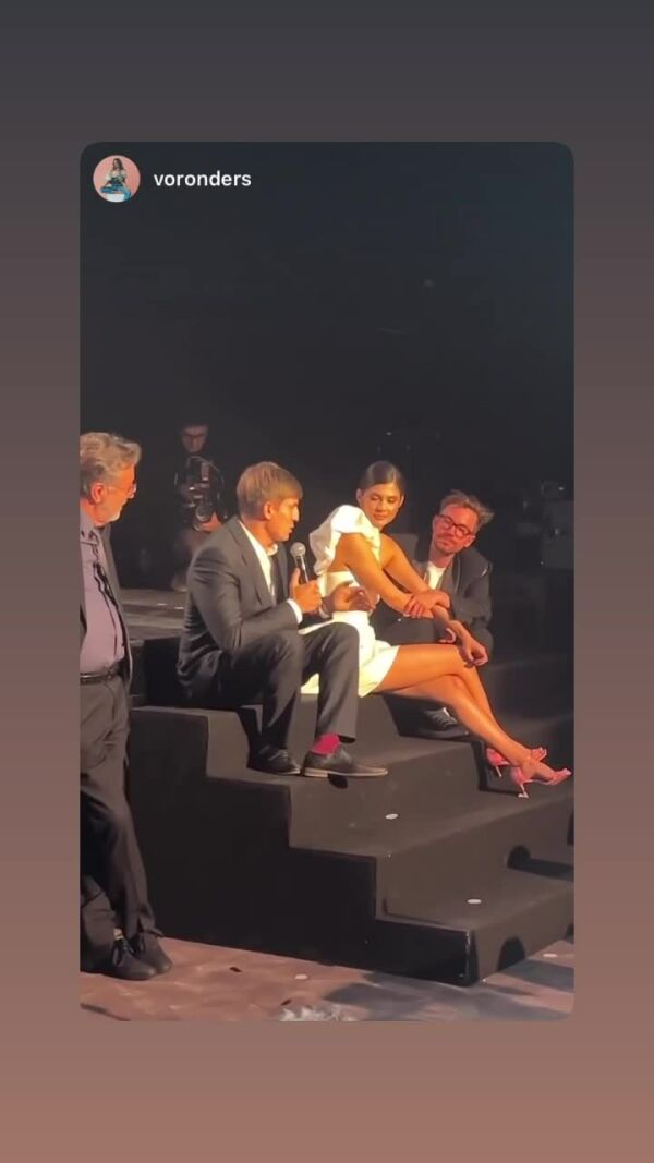 Пара, держась за руки и волнуясь, ждала за кулисами, пока гости слушали заранее записанный ими рассказ об их романе. А затем эффектно появилась в зале.