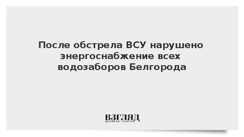 Энергоснабжение всех водозаборов Белгорода оказалось нарушено в результате ракетного удара со стороны Вооруженных сил Украины, говорится в сообщении водоканала Белгорода.