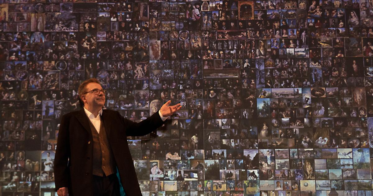Sur la scène, un monumental mur composé d’une centaine d’œuvres, de Giotto à Fragonard. Obalk est accompagné d’un violoncelliste (Florent Carrière) et d’un violoniste (Pablo Schatzman). Tout commence par l’Annonciation et Obalk, « juif par (s)a mère et catholique par la peinture », s’amuse de la situation : « Marie est un peu interloquée, il y a de quoi : elle est enceinte alors qu’elle est vierge, ce n’est pas évident. De plus, elle n’est pas enceinte de n’importe qui, de la puissance du Très Haut qui te couvrira de son ombre ! » Défense et illustrations…