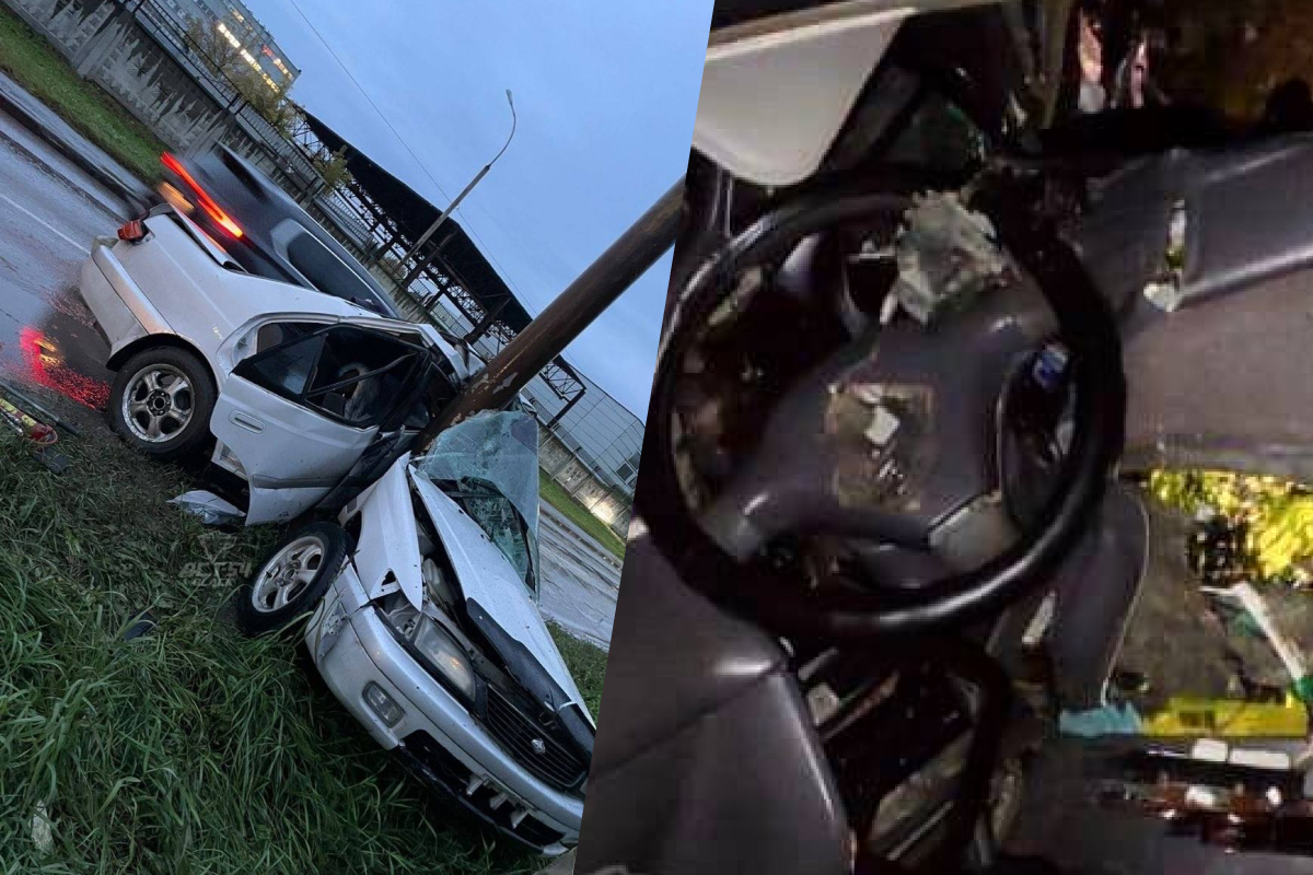 В Новосибирской области машина въехала в столб и сложилась пополам — окна и двери всмятку