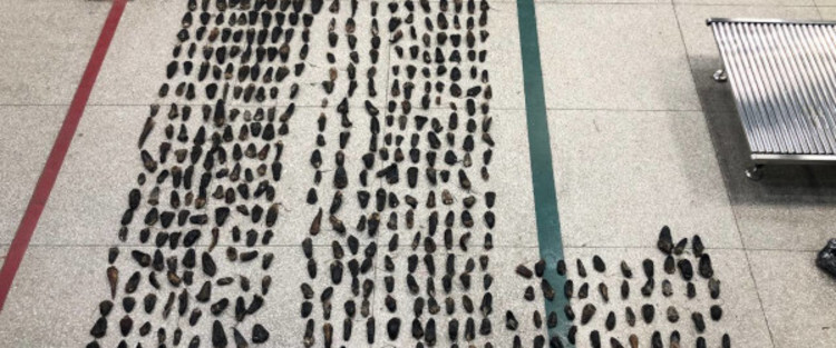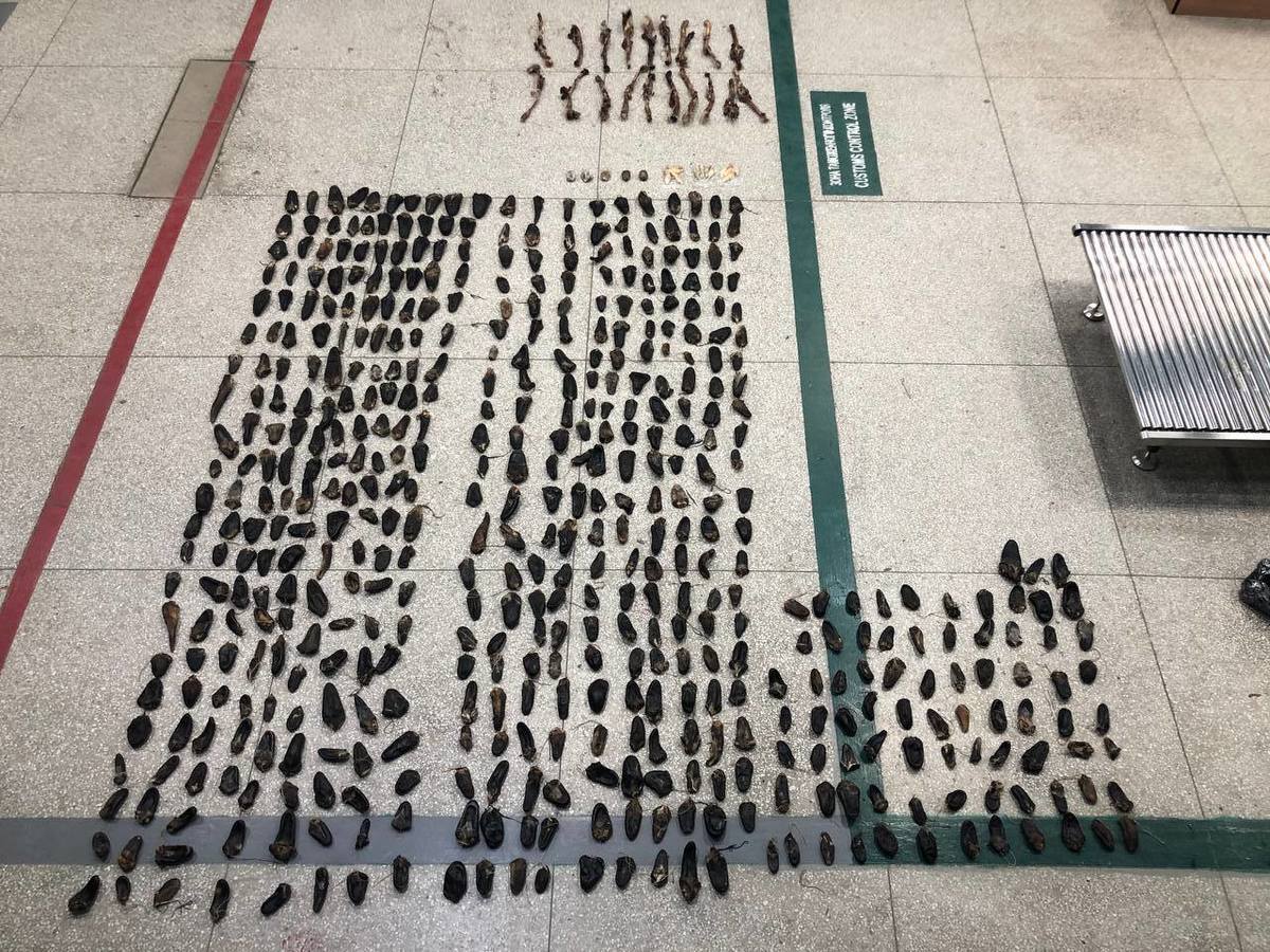 Во время досмотра таможенники изъяли 554 части тел диких животных. Экспертиза установила, что среди них – 518 хвостов и 19 половых органов оленей, 3 железы (мускус) кабарги с содержимым (секретом), 12 клыков и 2 кости (коленные чашечки) медведя.
