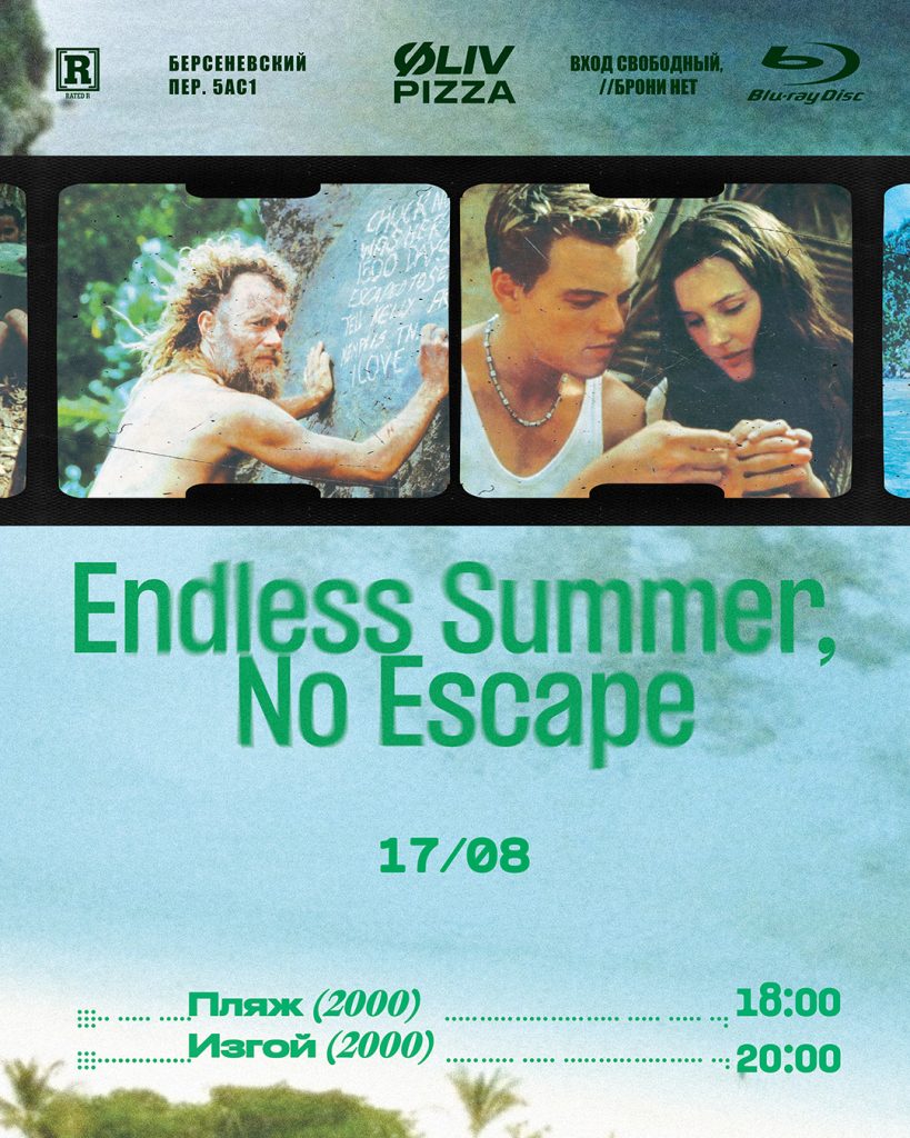 Гуляя по Москве в воскресенье, совмести вкусный ужин и просмотр популярных летних фильмов: «Пляжа» с Леонардо ДиКаприо и «Изгоя» с Томом Хэнксом.