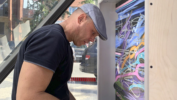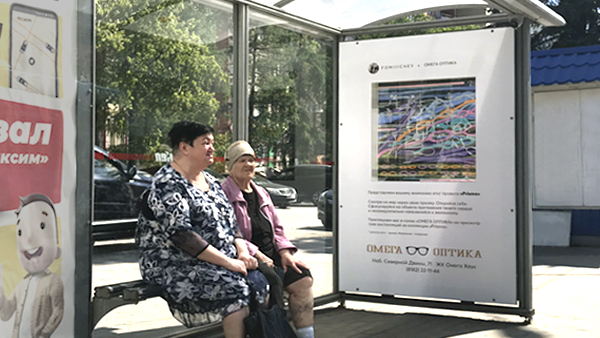 Увидеть творения молодого архангельского художника может любой желающий, даже пассажир автобуса – выставку анонсирует полотно, интегрированное в остановку общественного транспорта возле кукольного театра на Троицком проспекте. Динамичный «оптический» холст, закрепленный внутри стеклянного рекламного короба, является своеобразным приглашением на основную экспозицию в салон «Омега оптика».
