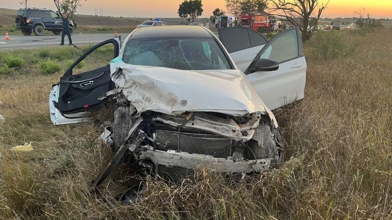 «Водитель автомобиля «Мерседес-Бенц», двигаясь со стороны Евпатории в сторону Симферополя, при выполнении обгона выехал на полосу встречного движения, где совершил столкновение с автомобилем «Ниссан Ноут», — рассказали о причинах аварии в крымском МВД.