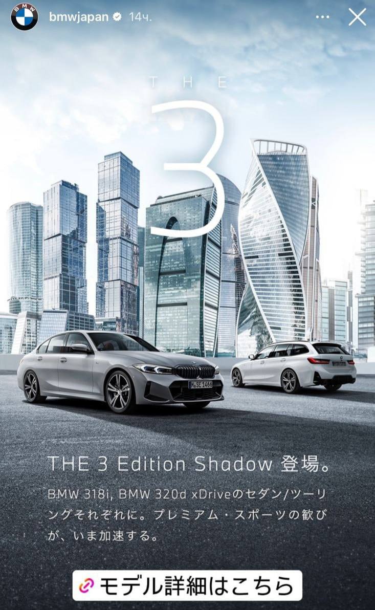 постер с BMW на фоне Москва-сити в сторис Instagram.