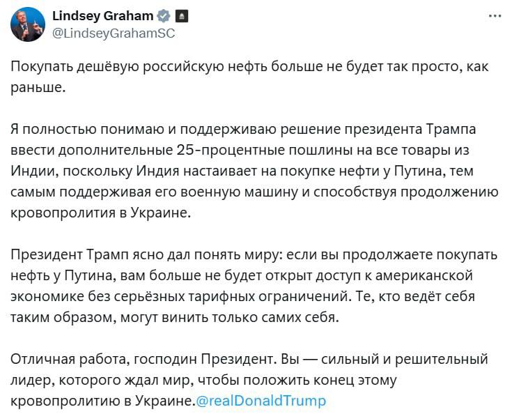 ΠΠ½ ΠΏΠΎΠ΄ΡΠ΅ΡΠΊΠ½ΡΠ», ΡΡΠΎ Π’ΡΠ°ΠΌΠΏ ΡΡΠ½ΠΎ Π΄Π°Π» ΠΏΠΎΠ½ΡΡΡ: ΡΡΡΠ°Π½Ρ, ΠΏΠΎΠΊΡΠΏΠ°ΡΡΠΈΠ΅ ΡΠΎΡΡΠΈΠΉΡΠΊΡΡ Π½Π΅ΡΡΡ, ΠΏΠΎΡΠ΅ΡΡΡΡ Π±Π΅ΡΠΏΡΠ΅ΠΏΡΡΡΡΠ²Π΅Π½Π½ΡΠΉ Π΄ΠΎΡΡΡΠΏ ΠΊ Π°ΠΌΠ΅ΡΠΈΠΊΠ°Π½ΡΠΊΠΎΠΉ ΡΠΊΠΎΠ½ΠΎΠΌΠΈΠΊΠ΅.