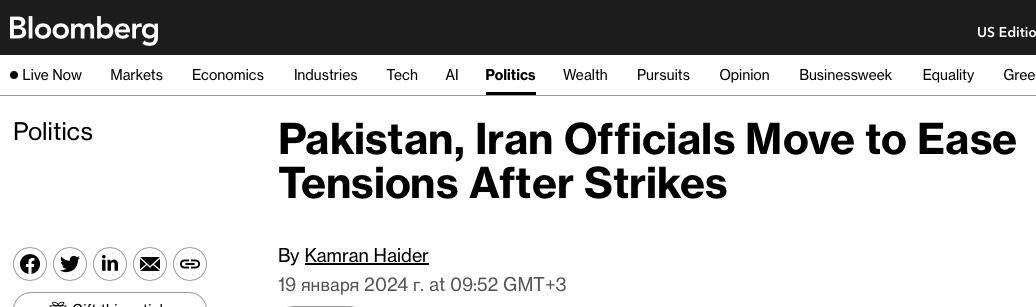 📝 «Мы неоднократно говорили, что Иран - друг. Мы не хотим эскалации, и мы также получили подобные настроения с их стороны. Так что мы идем дальше», – заявила пресс-секретарь министерства иностранных дел Пакистана Мумтаз Захра Балох.