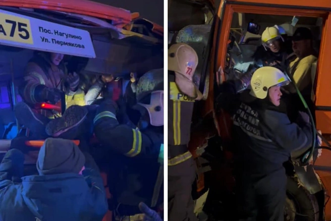 Авария произошла около 17:30 в районе поселка Нагулино. Водители оказались зажаты в автобусах — им помогли выбраться спасатели. По данным регионального Минздрава, всего в больницу доставили пять человек.