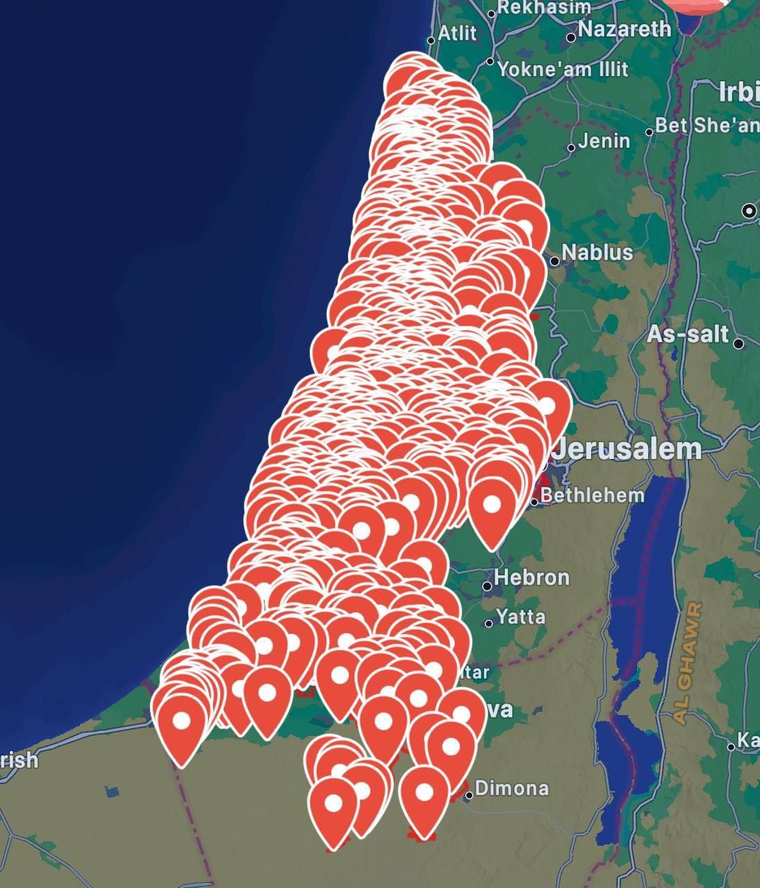 UPD. Появляются сообщения, что общее количество запущенных по Израилю ракет около 300. ВВС Израиля подняты в воздух для их перехвата. По другим сообщениям, зафиксировано 102 пуска.