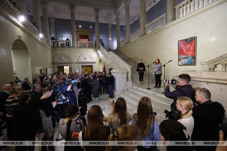 29 января, Минск /Корр. БЕЛТА/. Передвижной культурно-патриотический выставочный проект "Знамя Победы" представлен в Национальном художественном музее. В его экспозиции - более 40 уникальных работ, посвященных военному времени, передает корреспондент БЕЛТА.