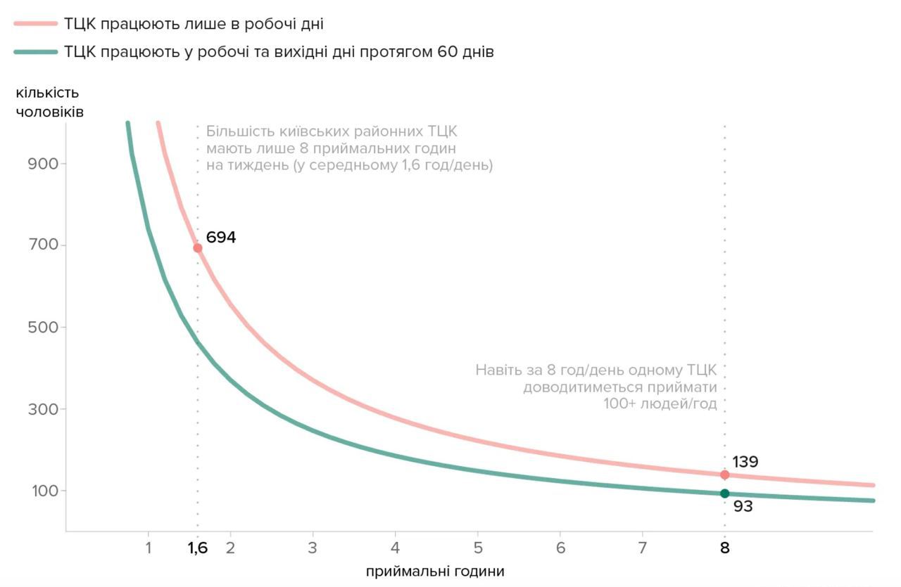 При нынешнем количестве приемных часов один ТЦК за один час должен обновить данные около 700 мужчин.