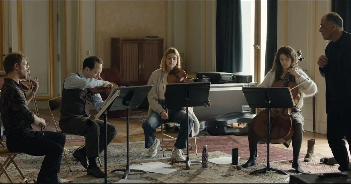 Le temps presse. Le fougueux Georges (Mathieu Spinosi), sorte de rock star du violon, a beau être talentueux, il est trop imbu de sa personne. La plus jeune du groupe, Apolline (Emma Ravier), musicienne influenceuse forte de 700.000 followers, se retrouve vite méprisée et mise à l’écart par ses confrères. Quant au couple désuni, le presque aveugle Peter (Daniel Garlitsky) et Lise (Marie Vialle), ils se toisent en chiens de faïence, n’ayant fait ni l’un ni l’autre le deuil d’une relation amoureuse.