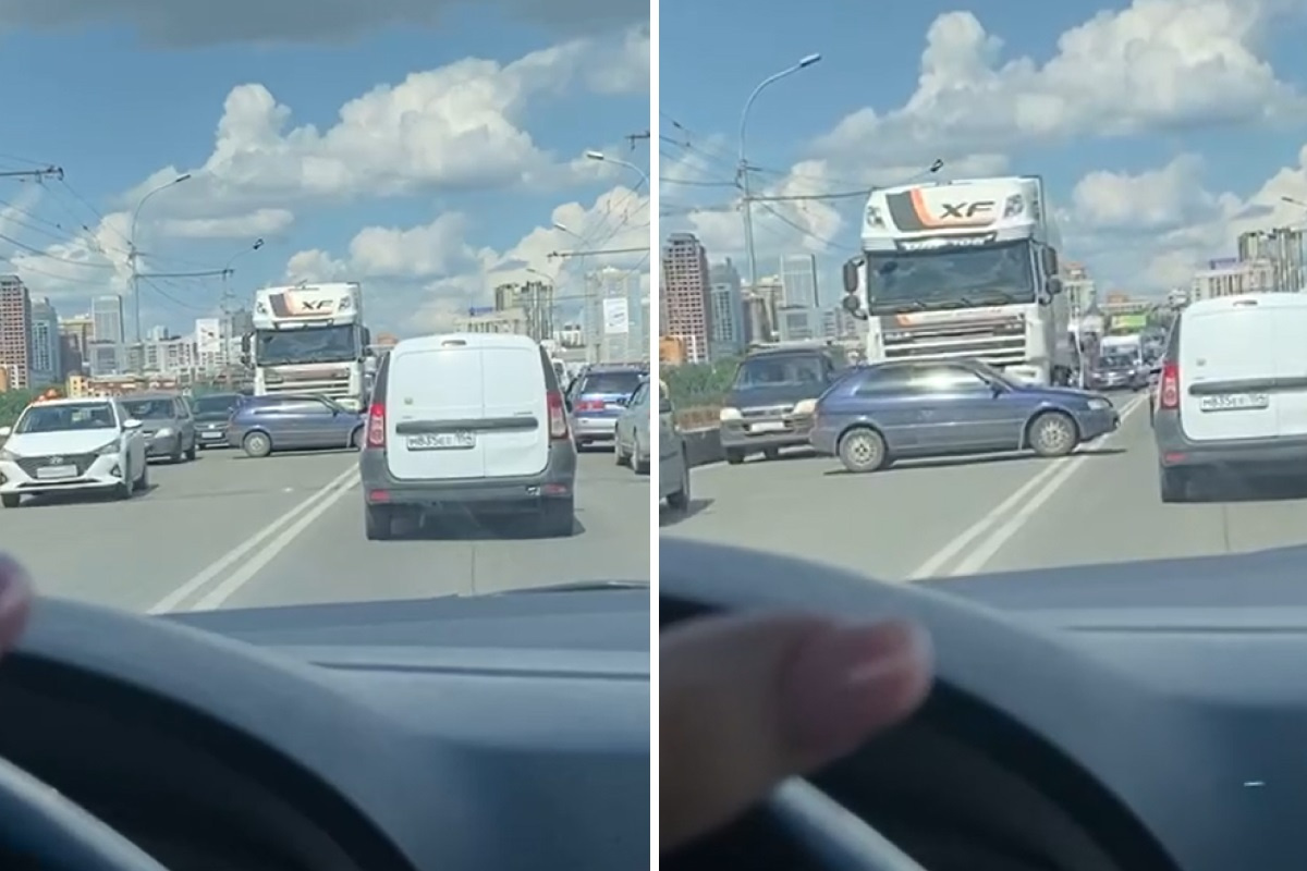 В Новосибирске днем 3 июля на Октябрьском мосту столкнулись фура и хетчбэк. В результате на дороге собралась пробка.