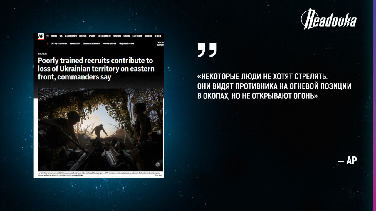 ВСУ терпят крах по всем фронтам, пишет AP. Все дело в некомпетентности солдат — так, новобранцы, которых насильно забирают прямо с улицы, отказываются стрелять по русским, не могут собрать и разобрать оружие, а многие даже оставляют свои посты и покидают поле боя. Командиры лишь грустно констатируют плохую подготовку бойцов, из-за чего ВСУ отступают на Покровском направлении.