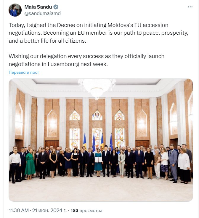 Майя Санду сообщила об этом в соцсети Х (бывший «Твиттер»):