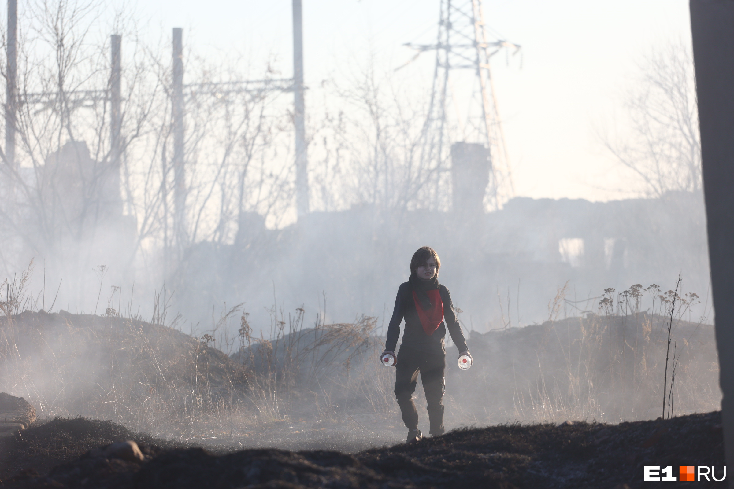 Весна 2023-го — время сильных природных пожаров. На этом снимке мальчик помогает потушить сильный огонь в поселке Совхозном