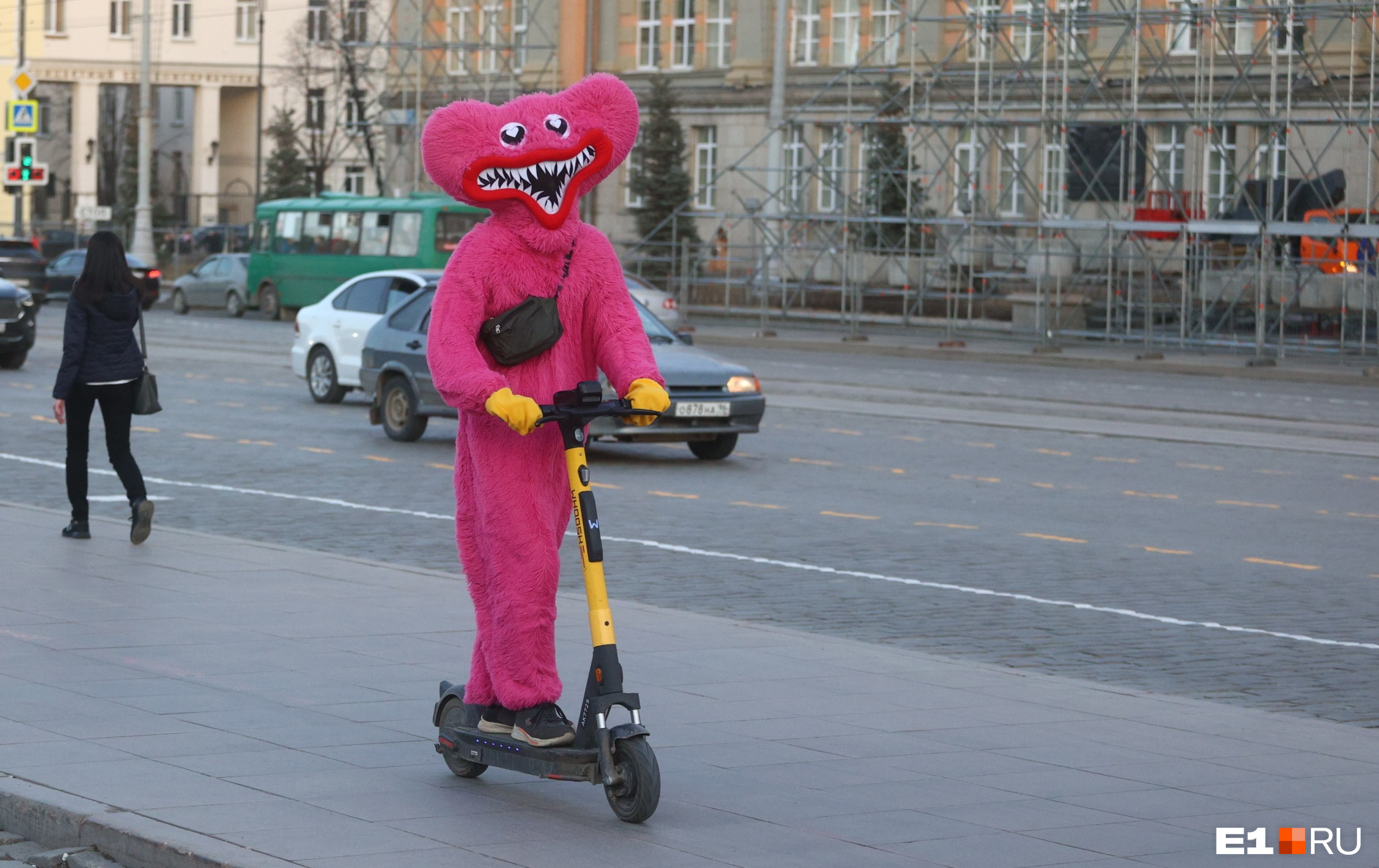 Физик Руслан Сафаров, играющий на барабанах в костюме единорога