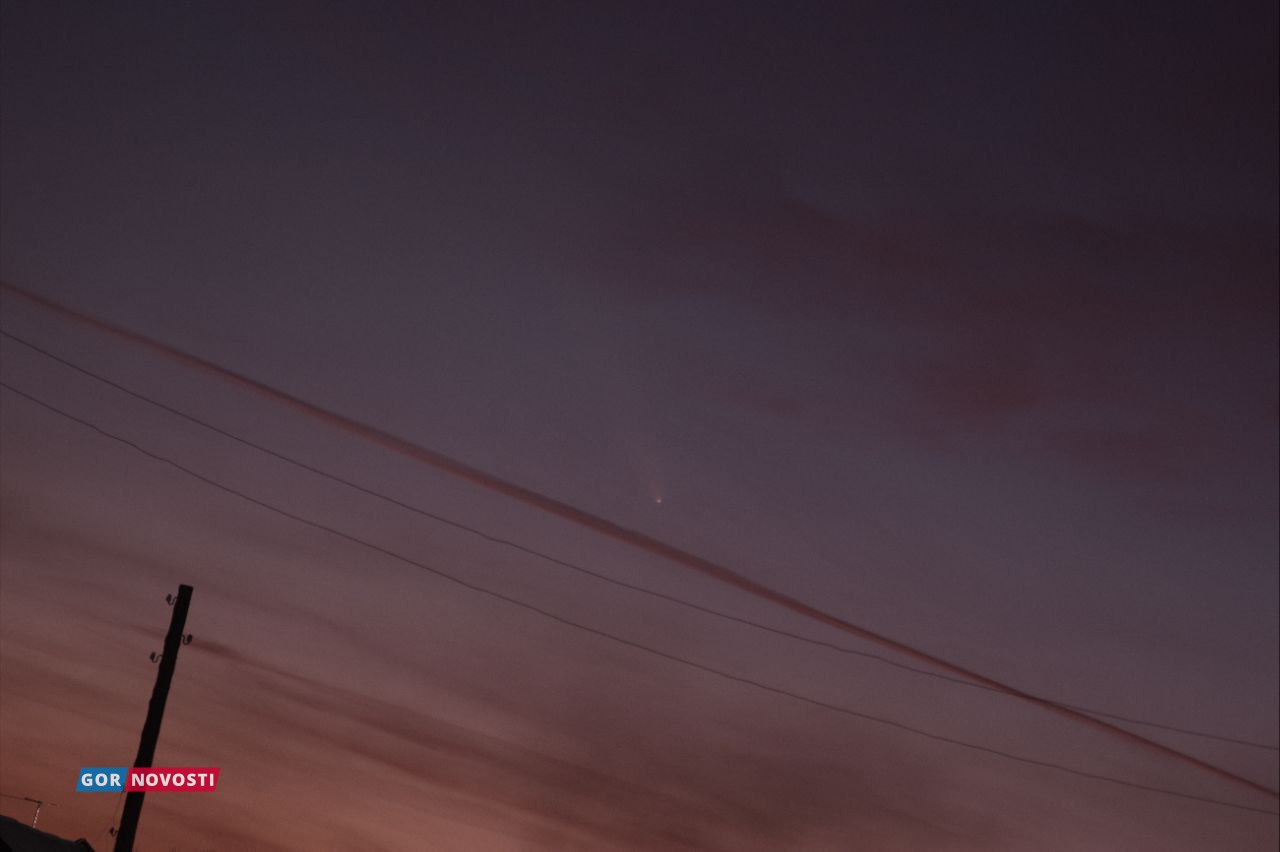Фотографиями с Gornovosti поделился читатель. Он заметил хвостатую гостью C/2023 A3 в небе в Козульском районе.