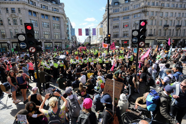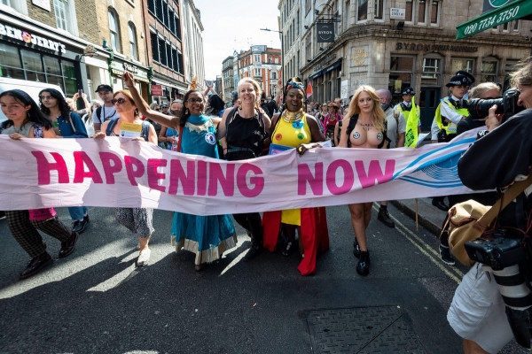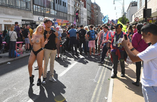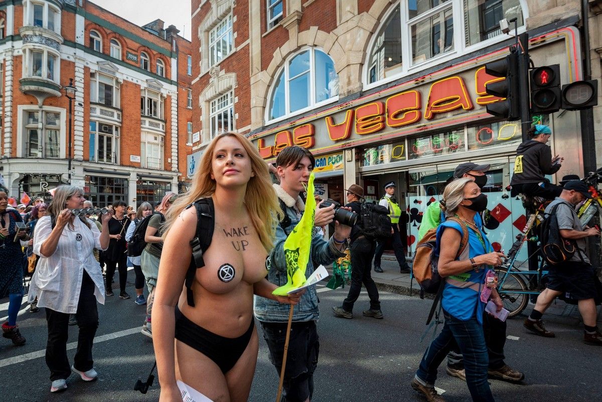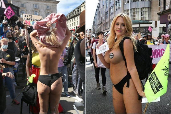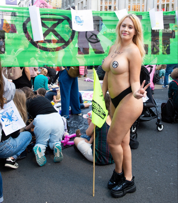 Одной из самых ярких участниц протестов стала 31-летняя Лаура Амхерст (Laura Amherst). Студент-политик, которая танцевала топлес, одетая только в трусики и с наклейками на сосках, заявила, что сделала это, чтобы "привлечь внимание к климатическому кризису". Она рассказала, что ее танцы топлесс "придали протесту приятную энергию".
