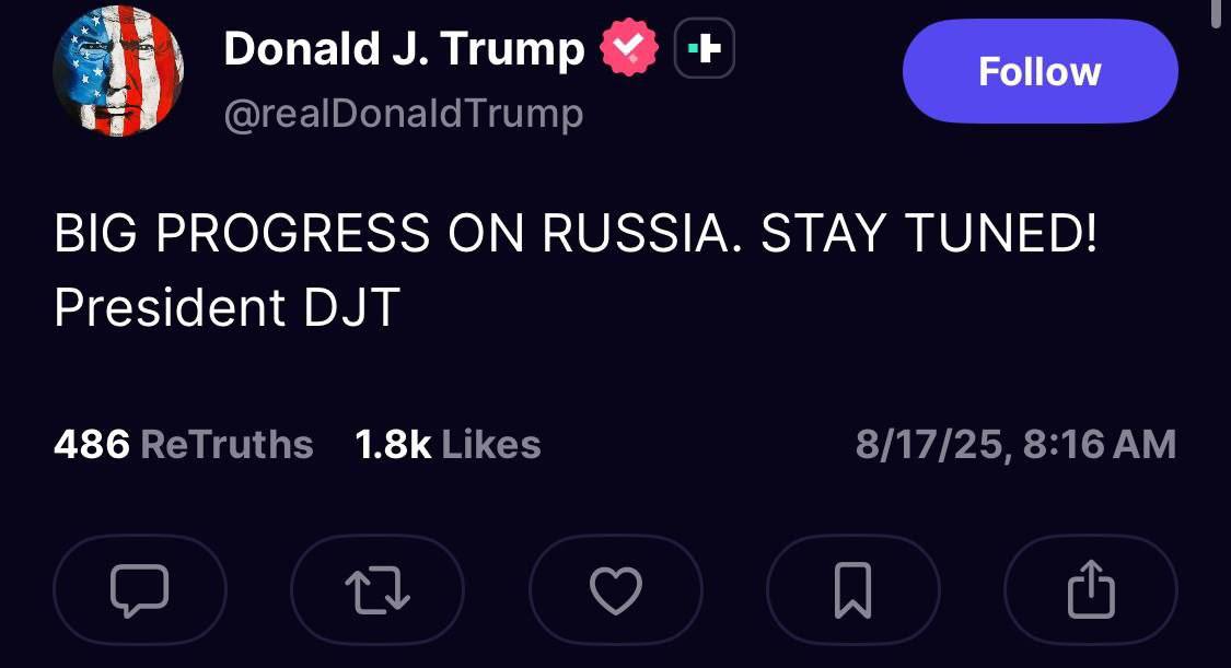 Президент Трамп только что в социальной сети Truth Social во время видео связи с европейскими странами и Украиной: