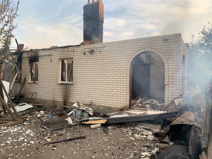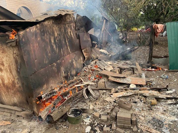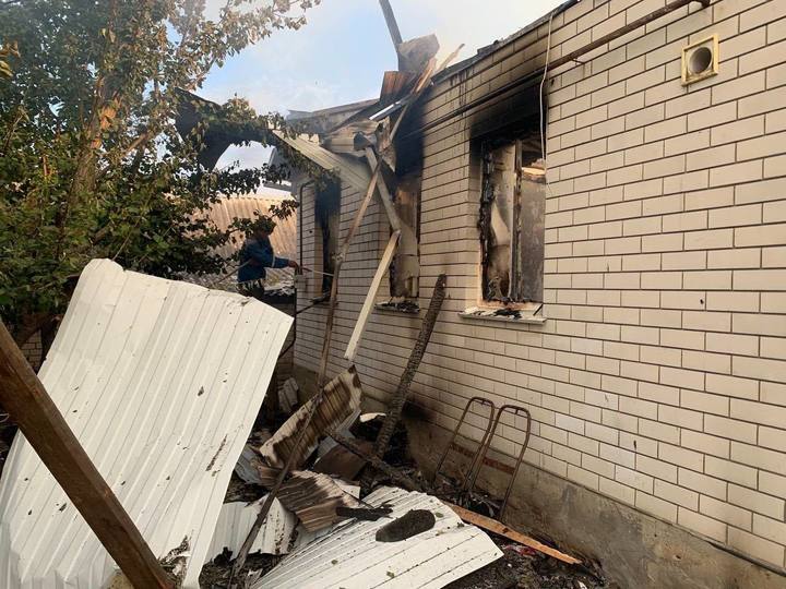 После сбросов взрывных устройств с БПЛА сгорели три частных дома. Обход территории еще не завершен.