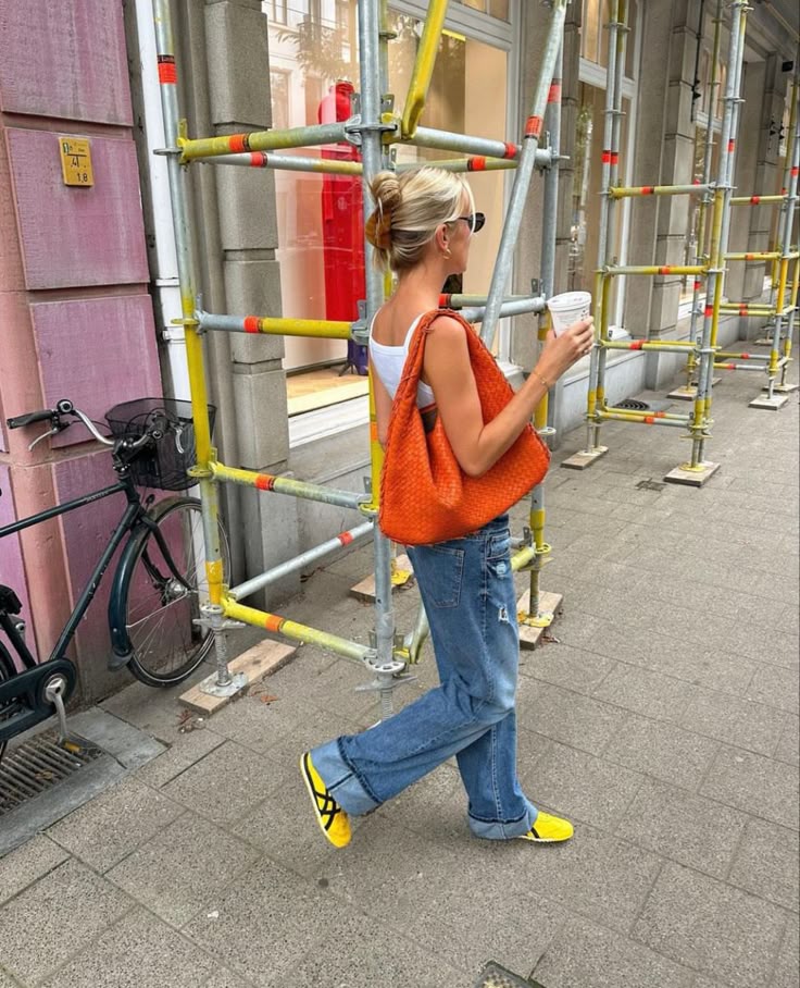 Balenciaga анонсирует новые яркие цвета культовой City Bag, Кайли Дженнер отдает предпочтение розовой биркин, а фэшн-инфлюенсеры выбирают акцентные сумки. В социальных сетях все больше набирает популярность тренд на необычные оттенки: лаймовый, желтый, винный, бирюзовый – неважно какой именно, главное – не черный. Balenciaga в погоне за трендом показывает новые расцветки своей it-bag от кислотно-розового до персикового. Кайли в повседневный лук из белой майки и синих джинсов добавляет розовую Birkin. И идеальный образ готов.