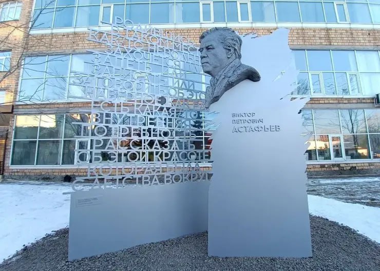 Он представляет собой портрет писателя и строки из его интервью. Губернатор Красноярского края Михаил Котюков в своем телеграм-канале отметил, что установить памятник просили местные жители.
