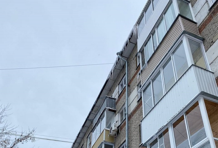 Сосульки также образовали на доме в Первомайском районе. Местная жительница Ирина Ступень опубликовала фотографии наростов в телеграм-канале «Моя Первомайка». По ее словам, лед образовался на здании №86 по улице Первомайская.