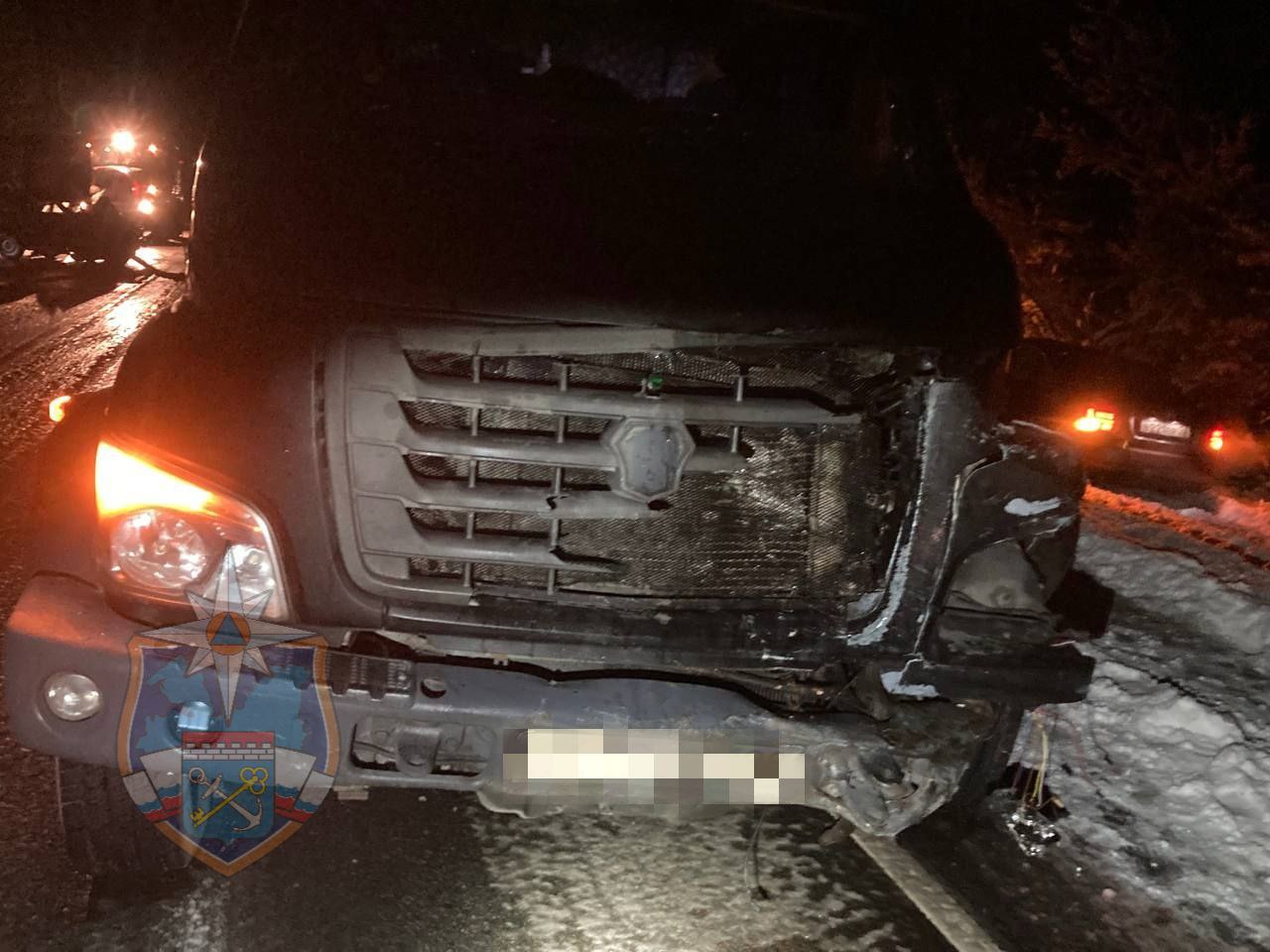 Водитель «ВАЗ-2105» не справился с управлением, выехал на встречную полосу движения и влетел в грузовик. От удара он врезался в большегруз «Ситрак», который также потерял управление и съехал с дороги в кювет.