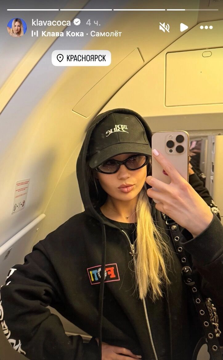 Клава Кока прилетела в Красноярск за несколько часов до концерта. Она выложила фото из самолета.