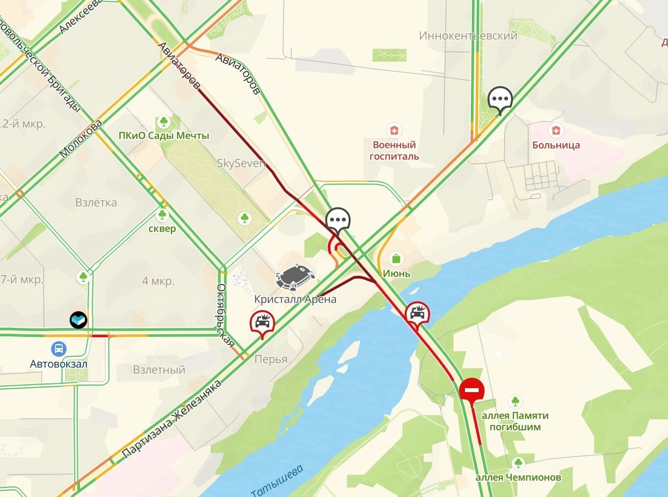 Вечером, перел концертом, на Октябрьском мосту собрались пробки. Красным горел сам мост и несколько улиц перед ним.