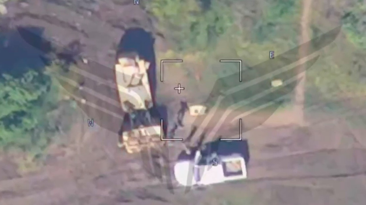 Уточняется, что бронетехнику поразили барражирующим боеприпасом «Ланцет». Это сделал расчет Испытательного центра перспективных беспилотных технологий Минобороны России «Рубикон».