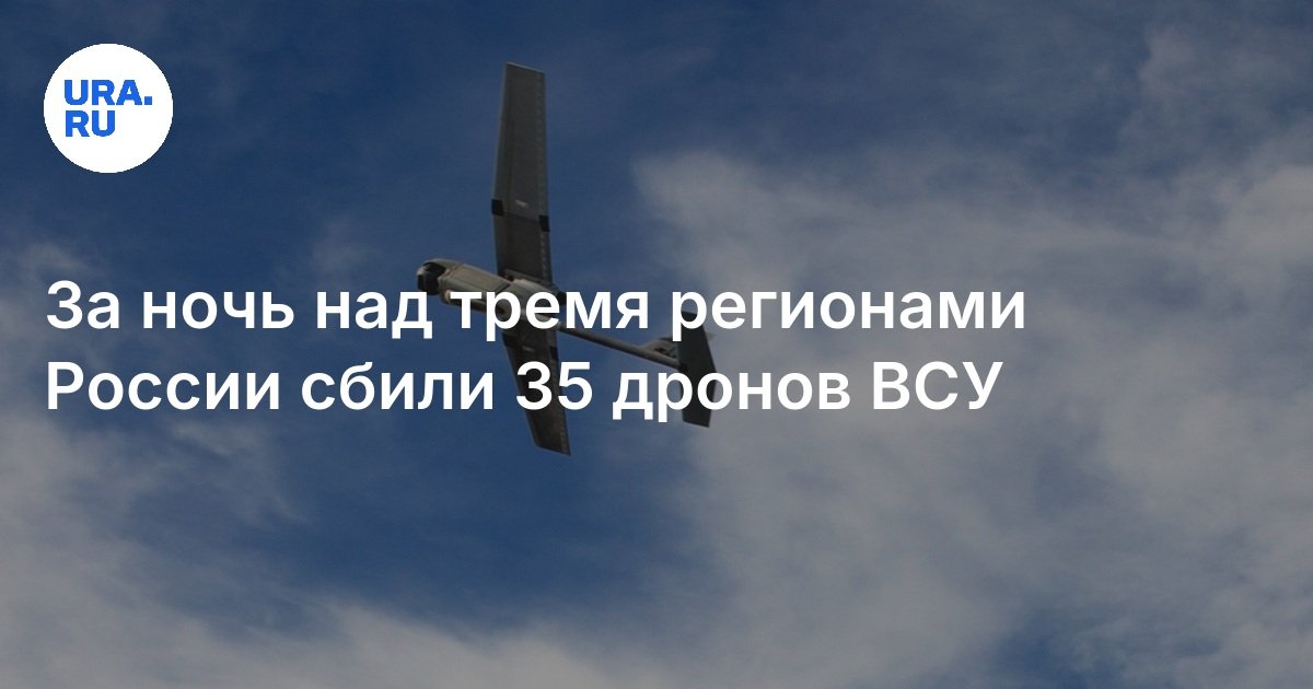 «Российская ПВО уничтожила 35 украинских дронов за ночь», — заявили в ведомстве. Так, над Крымом уничтожено 26 беспилотников, над Брянской областью — восемь, а над Белгородской один дрон.