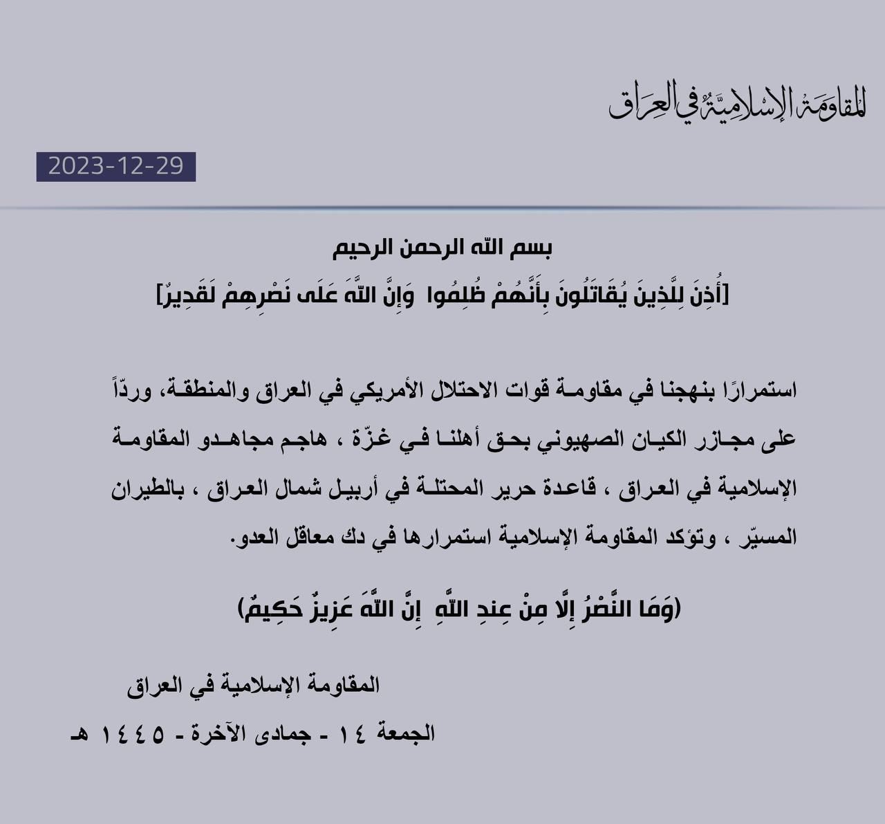 🇮🇶🇺🇸 «Исламское сопротивление в Ираке» атаковало военную базу США «Харир» в Эрбиле (Ирак)