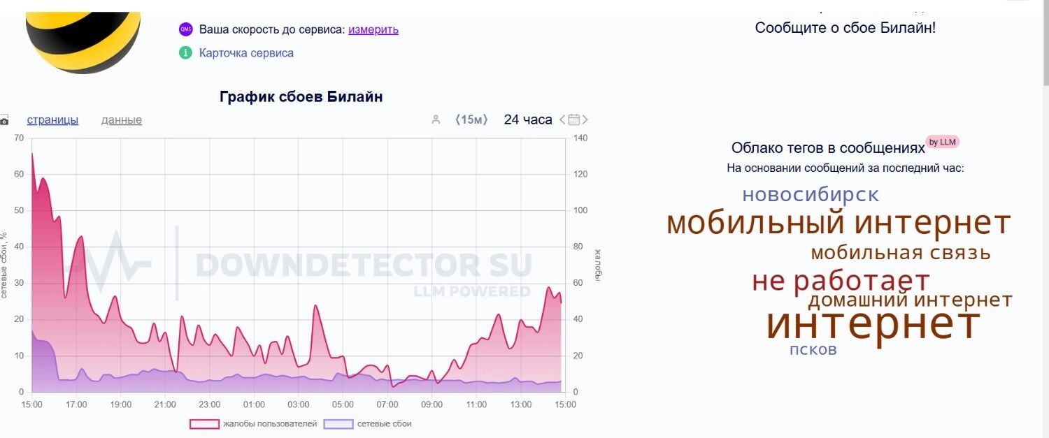 Согласно данным сервиса Сбой.РФ, больше всего жалоб поступает на оператора МТС, Билайн, МегаФон и Tele2.