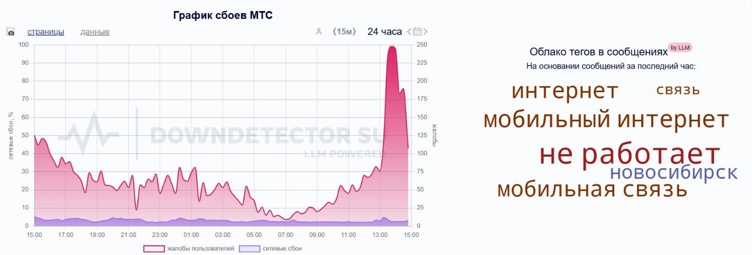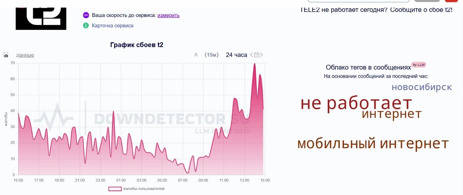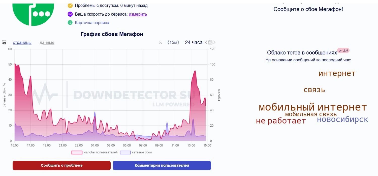 Сайт downdetector также фиксирует сбои. Пользователи платформы из Новосибирской области столкнулись с проблемами операторов: МТС (46%), Мегафон (40%), Билайн (25%), T2 (29%).