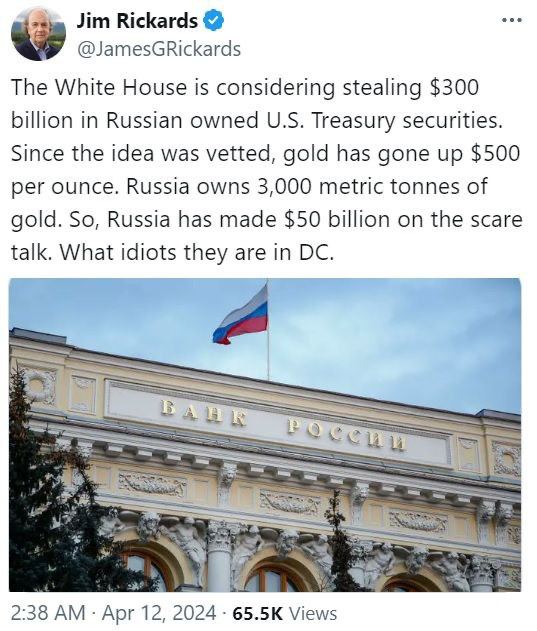 π Β«ΠΠ΅Π»ΡΠΉ Π΄ΠΎΠΌ ΡΠ°ΡΡΠΌΠ°ΡΡΠΈΠ²Π°Π΅Ρ Π²ΠΎΠ·ΠΌΠΎΠΆΠ½ΠΎΡΡΡ ΠΊΠΎΠ½ΡΠΈΡΠΊΠ°ΡΠΈΠΈ ΡΠΎΡΡΠΈΠΉΡΠΊΠΈΡ Π°ΠΊΡΠΈΠ²ΠΎΠ² Π½Π° ΡΡΠΌΠΌΡ $300 ΠΌΠ»ΡΠ΄, Π²Π»ΠΎΠΆΠ΅Π½Π½ΡΡ Π² Π°ΠΌΠ΅ΡΠΈΠΊΠ°Π½ΡΠΊΠΈΠ΅ ΡΠ΅Π½Π½ΡΠ΅ Π±ΡΠΌΠ°Π³ΠΈ. ΠΠΎΠΊΠ° ΠΎΠ½ΠΈ ΡΠ°ΠΌ Π½ΠΎΡΡΡΡΡ Ρ ΡΡΠΎΠΉ ΠΈΠ΄Π΅Π΅ΠΉ, Π·ΠΎΠ»ΠΎΡΠΎ ΡΠΆΠ΅ ΠΏΠΎΠ΄Π½ΡΠ»ΠΎΡΡ Π² ΡΠ΅Π½Π΅ Π½Π° $500 Π·Π° ΡΠ½ΡΠΈΡ. Π Π·ΠΎΠ»ΠΎΡΠΎΠΉ Π·Π°ΠΏΠ°Ρ Π ΠΎΡΡΠΈΠΈ ΡΠΎΡΡΠ°Π²Π»ΡΠ΅Ρ ΠΏΡΠΈΠΌΠ΅ΡΠ½ΠΎ 3 ΡΡΡΡΡΠΈ ΠΌΠ΅ΡΡΠΈΡΠ΅ΡΠΊΠΈΡ ΡΠΎΠ½Π½. Π’ΠΎ Π΅ΡΡΡ, Π ΠΎΡΡΠΈΡ ΡΠΆΠ΅ Π·Π°ΡΠ°Π±ΠΎΡΠ°Π»Π° Π½Π° ΡΡΡΠ°Ρ Π΅ ΠΊΠΎΠ½ΡΠΈΡΠΊΠ°ΡΠΈΠΈ ΡΠ²ΠΎΠΈΡ Π°ΠΊΡΠΈΠ²ΠΎΠ² $50 ΠΌΠ»ΡΠ΄. ΠΠ°ΠΊΠΈΠ΅ ΠΆΠ΅ ΠΈΠ΄ΠΈΠΎΡΡ ΡΠΈΠ΄ΡΡ Π² ΠΠ°ΡΠΈΠ½Π³ΡΠΎΠ½Π΅!Β», β Π·Π°ΡΠ²ΠΈΠ» ΡΠΊΡΠΏΠ΅ΡΡ.